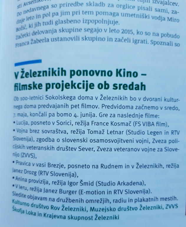Ponudila se je priložnost, da so v občini Železniki, junija 2025, obudili predvajanje filmov ob 100–letnici Sokolskega doma. Med petimi filmi je tudi veteranom uspelo s predvajanjem.